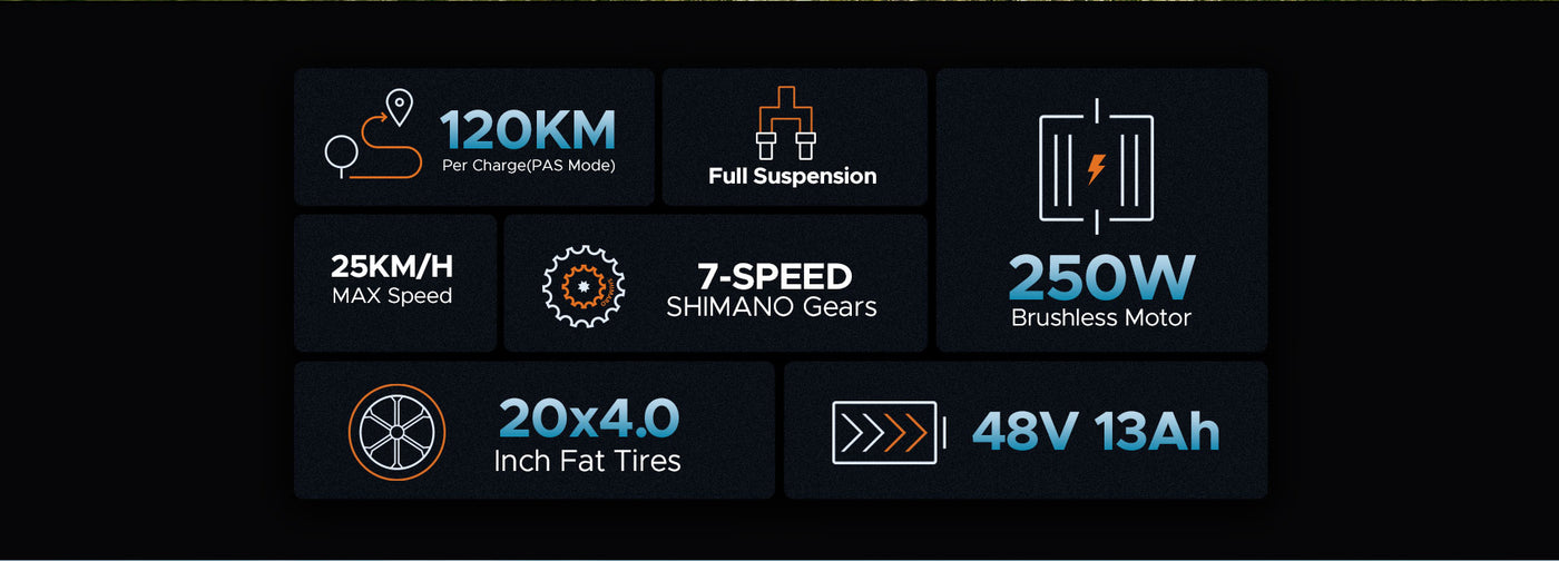 250W 100 km Range Max Speed 25 km/h Full Suspension Foldable E-bike