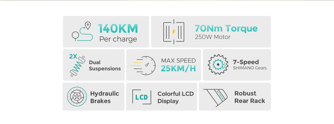 250W 140 km Max Speed 25 km/h Dual Suspension All-Terrain E-bike