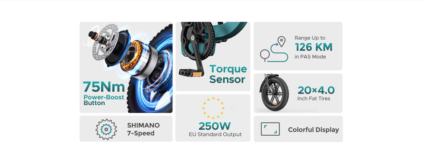 250W 126KM 25KM/H Power-boost Torque Sensor Step-Thru E-bike